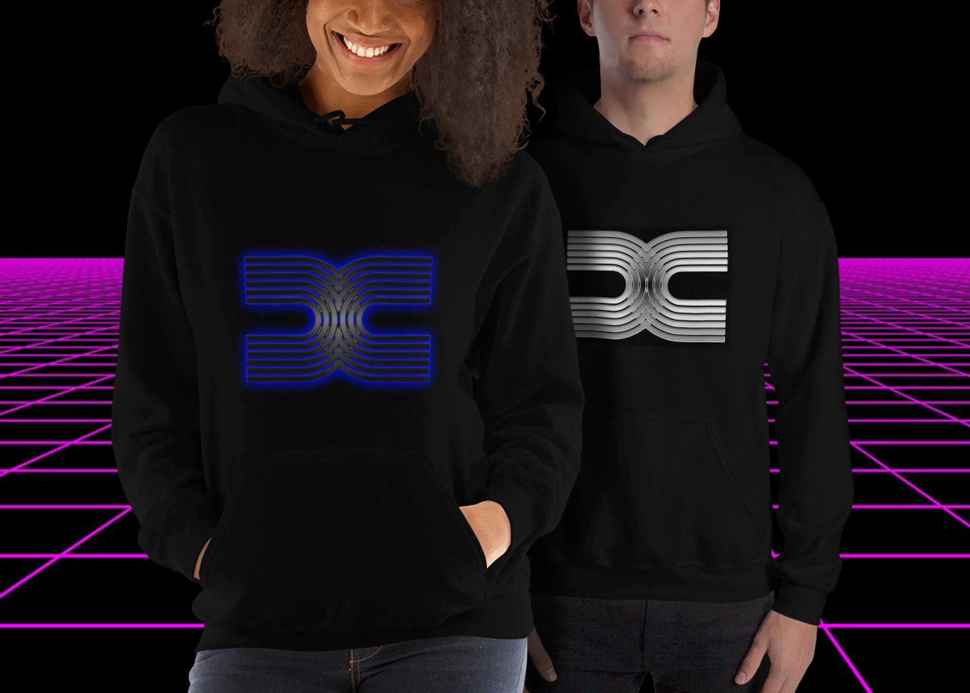 Black Hooded Sweatshirt available in two designs. A metallic effect DC logo or a darker DC logo with a blue neon glow. Available in sizes Small to 3XL